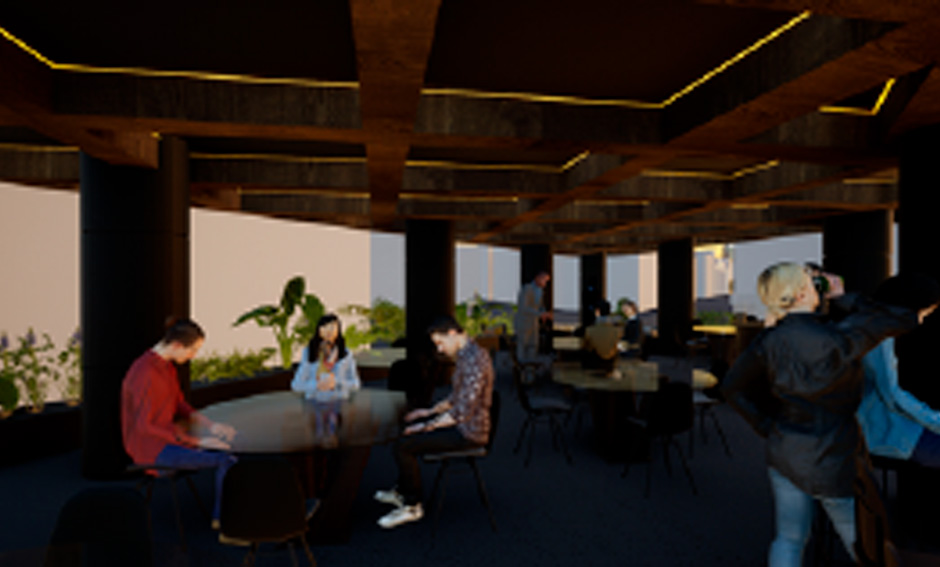 • Doble altura. Vacíos generando movimiento en fachada y ventilación natural.