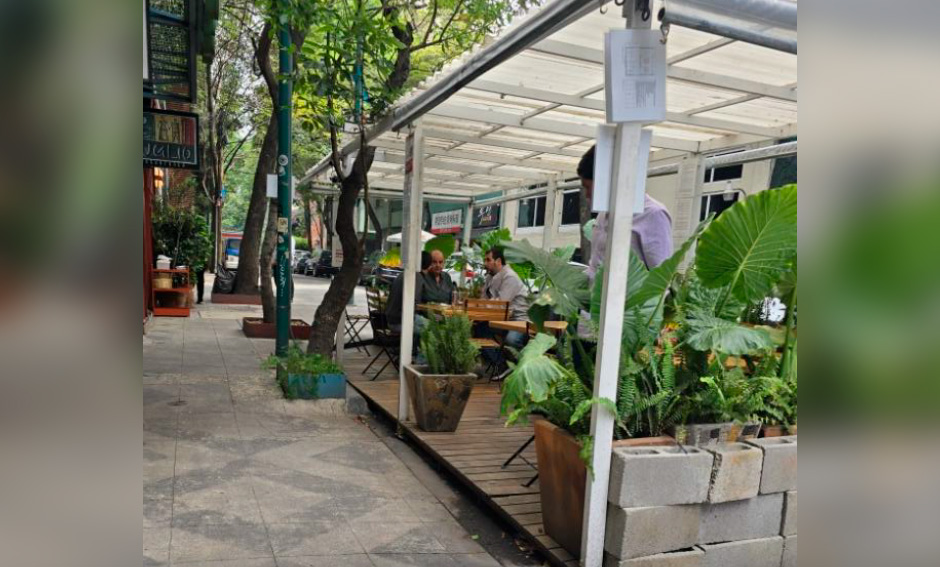 En la calle de Oxford, que conecta la col. Juárez con avenida Paseo de la Reforma, hay este edificio con 3 espacios comerciales. Uno en PB con pérgola, otro en 1er piso, actualmente panaderia, y otro en 5to piso, terraza al aire libre con techo descapotable eléctricamente.
