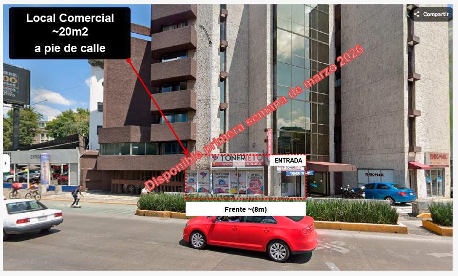 intersección (Diagonal Patriotismo, esquina Benjamín Franklin) con mucho flujo peatonal y vehicular. Metro y Metrobús enfrente a 50 metros.