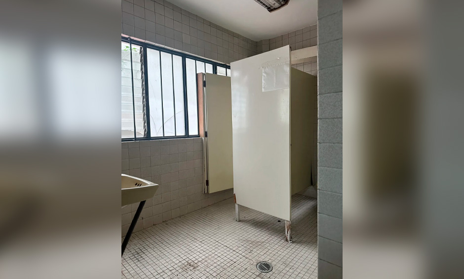 Baños de hombre (con dos servicios) y baño de mujeres (con dos servicios).